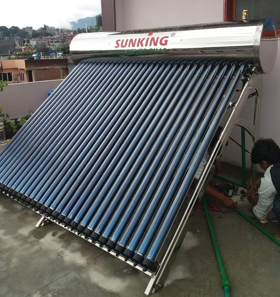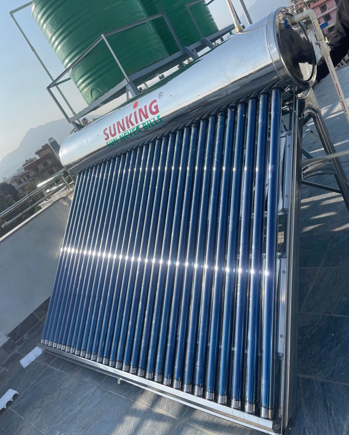 Evacuated tube solar water heaters for residential buildings are normally non-pressure type and work on thermosyphon principal. These types of SWHs are best suited for any house that has gravity-flow plumbing system.